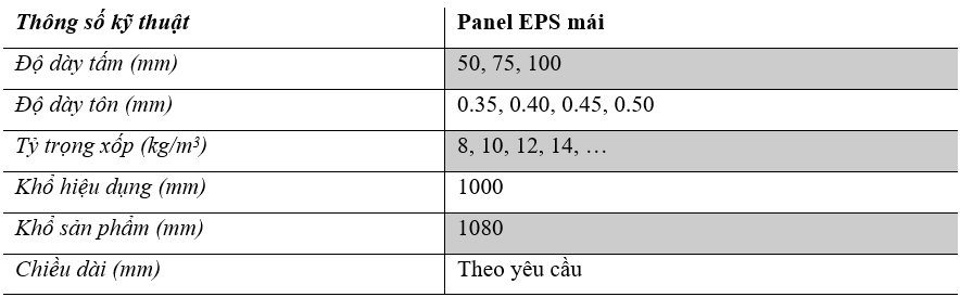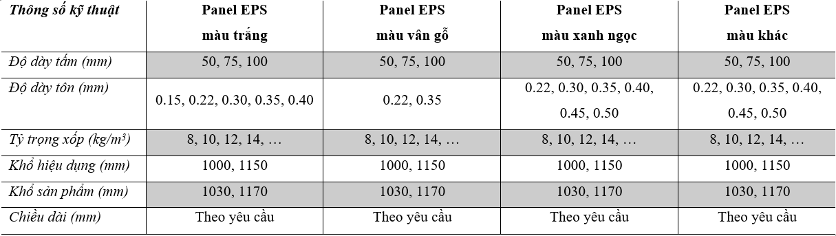 - 3 Màu sắc và thông số kỹ thuật của tấm Panel EPS tại Thanh Hóa