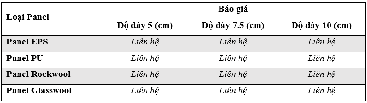 Do Panel có nhiều loại, nhiều thông số, cùng với sự tăng giảm chi phí sản xuất đầu vào ở mỗi thời điểm. Để có được bảng báo giá chính xác và chi tiết nhất, quý khách hàng trên toàn quốc vui lòng liên hệ đến SĐT hoặc Zalo: 0932.268.932 hoặc 093.555.6268.