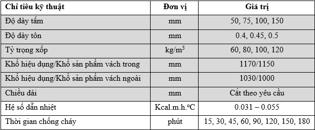 Thông số kỹ thuật của Panel bông khoáng chống cháy