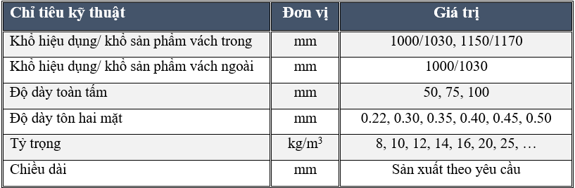 - Cấu tạo: Tôn + Xốp hạt đen + Tôn
