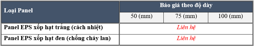 - 8 Báo giá Panel EPS xốp hạt đen chống cháy lan
