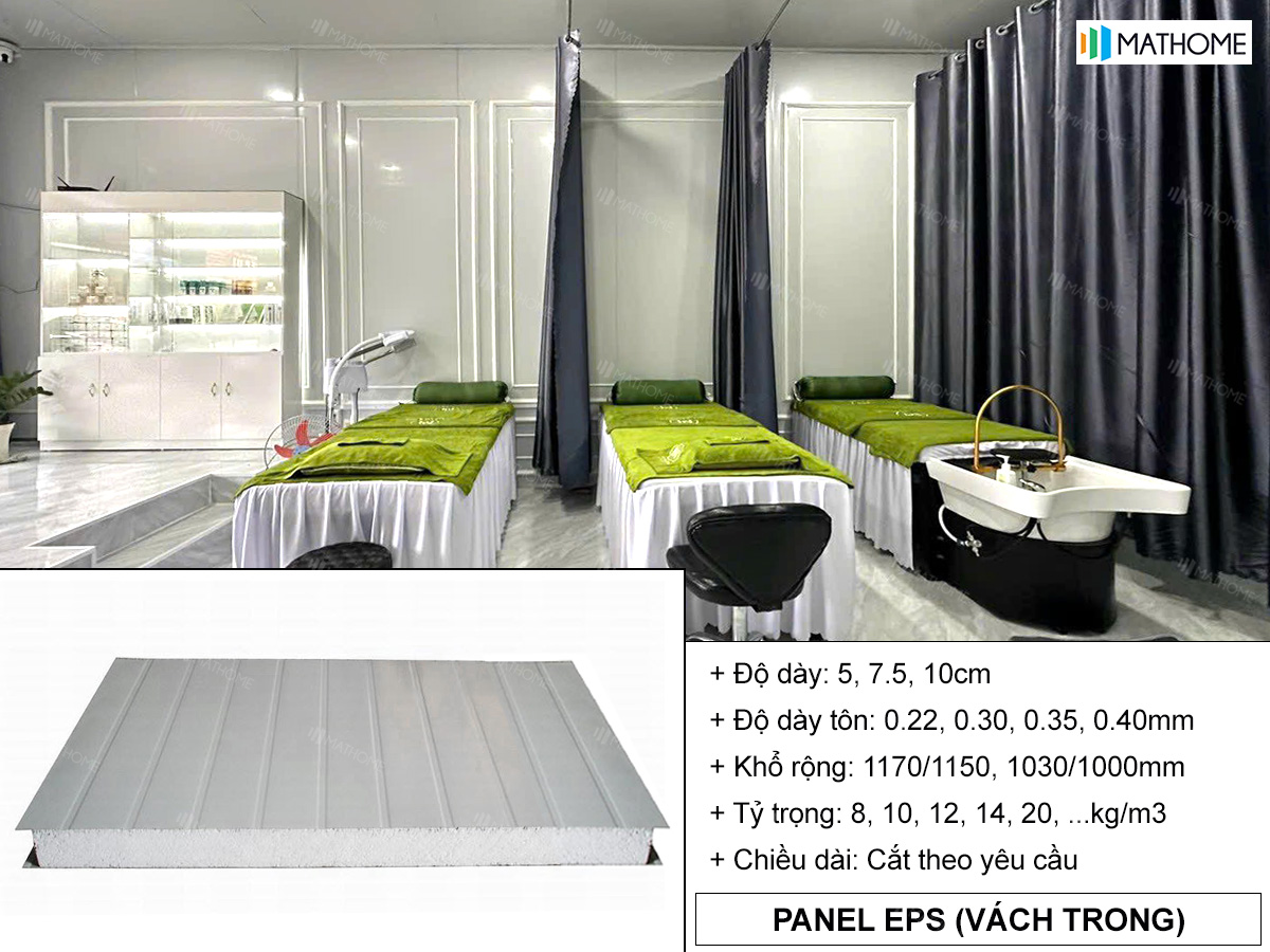 - Panel EPS vách trong chuyên dùng để thi công vách ngăn, vách trong, trần, cửa cho các công trình trong nhà, nơi có mái che.