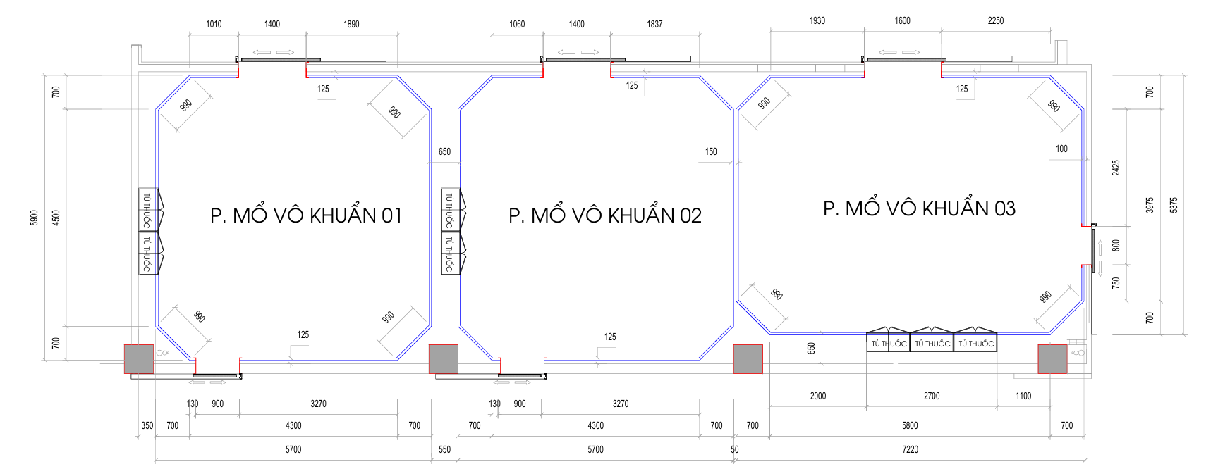 - 5 Bản vẽ thiết kế mặt bằng dựng vách, trần phòng mổ bằng Panel kháng khuẩn