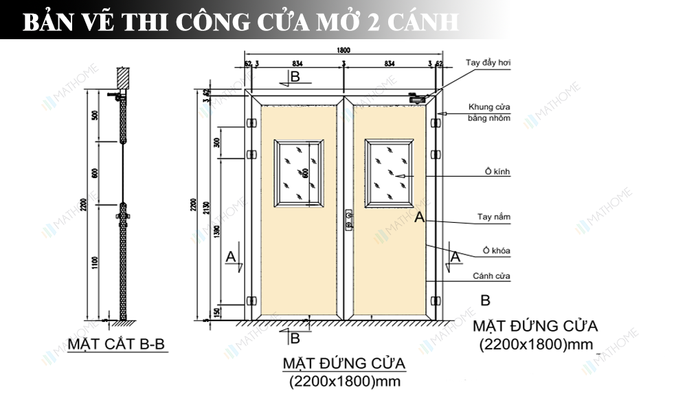Cửa mở 2 cánh: Có ô kính hoặc không có ô kính