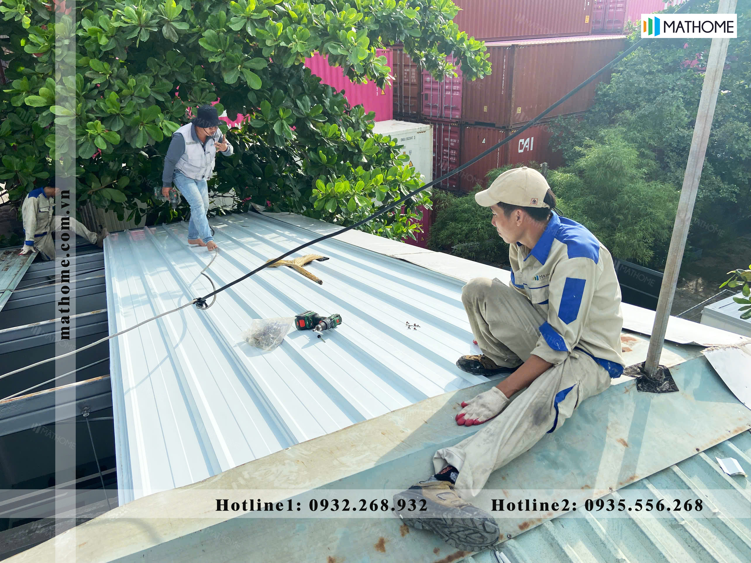 Trong công trình lần này, Mathome Việt Nam đã cung cấp 450m2 tấm lockvit, trực tiếp thi công tháo dỡ và lợp mái cho showroom nội thất tại Thủ Đức.