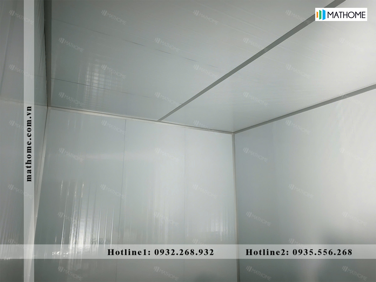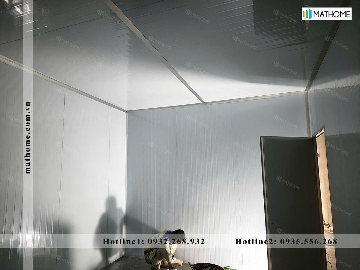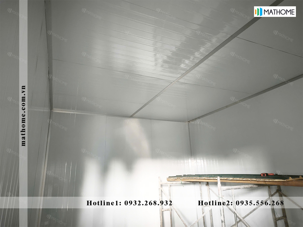 Phần trần được thi công bằng Panel cùng loại, chia tấm theo kích thước hợp lý để dễ lắp đặt và hạn chế hao hụt vật tư. Một số tấm Panel được cắt từ ô cửa được tận dụng làm trần, giúp tối ưu chi phí mà vẫn đảm bảo tính đồng bộ cho công trình.