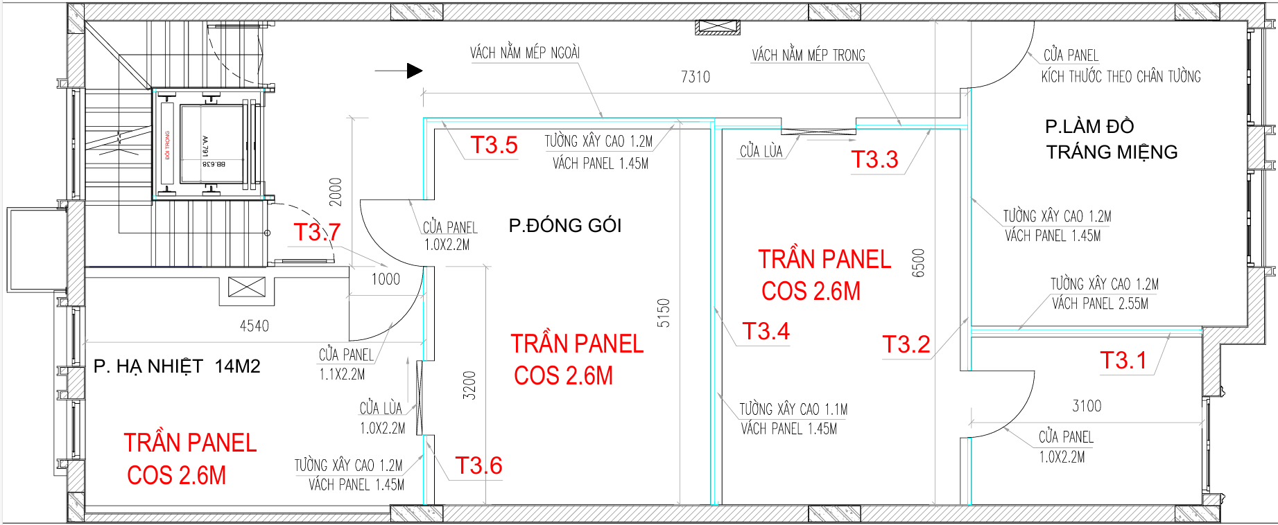 Việc bố trí Panel được thiết kế dựa trên mặt bằng công năng thực tế của từng tầng: khu kho, khu sơ chế, khu chế biến, khu đóng gói và khu văn phòng. Các tấm Panel được lắp ghép khít kín, tạo nên không gian khép kín, sạch sẽ, kiểm soát tốt nhiệt độ và độ ẩm, đồng thời giúp tối ưu chi phí thi công và vận hành lâu dài.