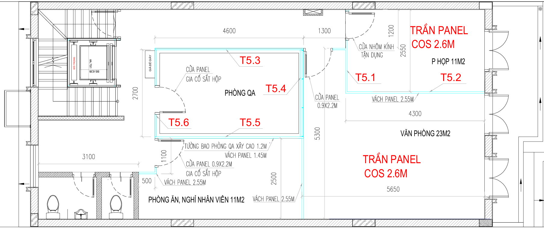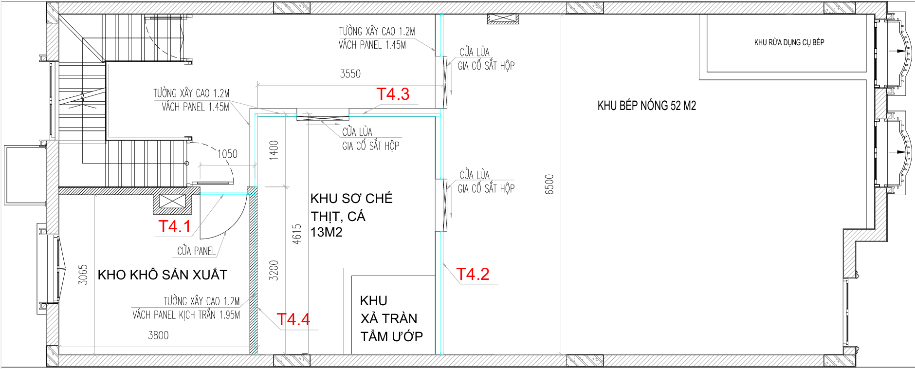Trong công trình bếp trung tâm 5 tầng tại Tây Tựu, hệ thống vách, trần, cửa panel EPS được bố trí đồng bộ theo từng khu chức năng, đảm bảo tiêu chuẩn an toàn và vận hành hiệu quả.