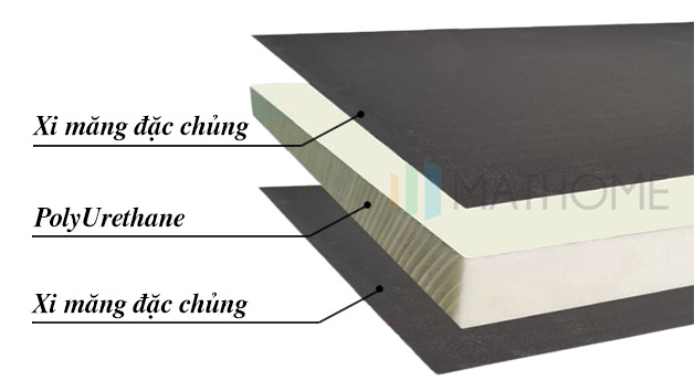 - Hai lớp ngoài: là giấy xi măng đặc chủng chống nước có tác dụng ngăn chặn, bảo vệ lớp lõi khỏi các tác động xấu của môi trường bên ngoài.