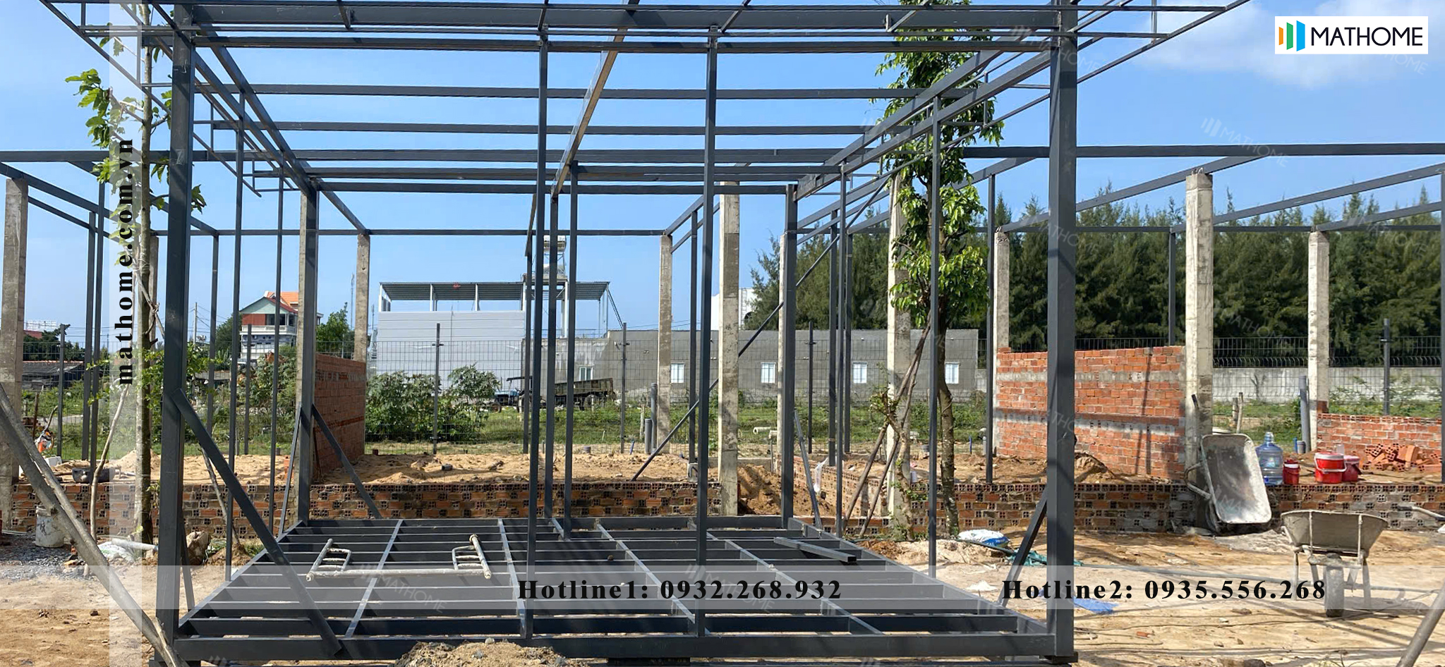 Khung: Hệ khung chịu lực chính gồm cột, dầm, xà gồ đều làm bằng thép hộp sơn chống rỉ. Nhằm tạo bộ khung vững chắc, dễ lắp dựng và di dời.