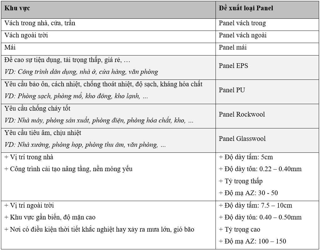 - Phân loại vị trí và đặc điểm của khu vực thi công ngay từ đầu và chọn đúng loại Panel theo tính năng: