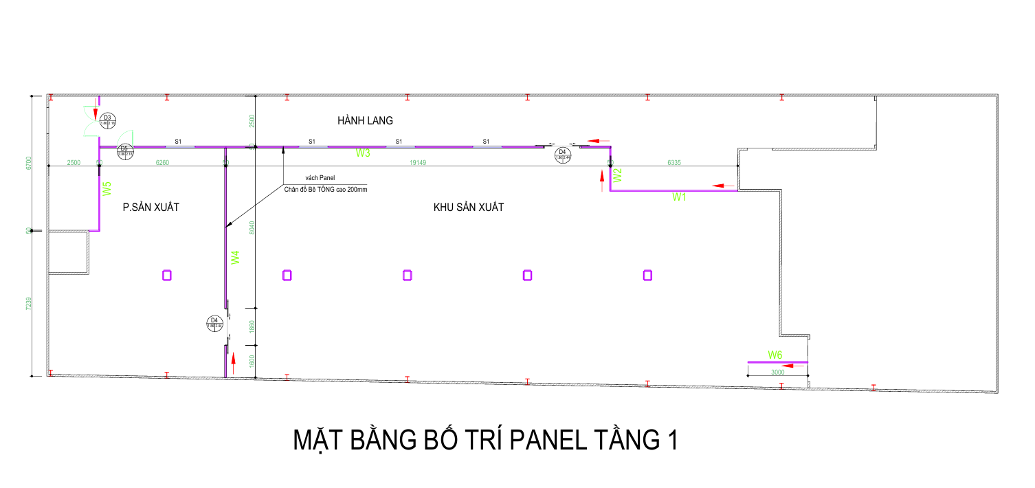 - 4 Mặt bằng thi công vách Panel trong Nhà máy sản xuất muối tôm An Giang