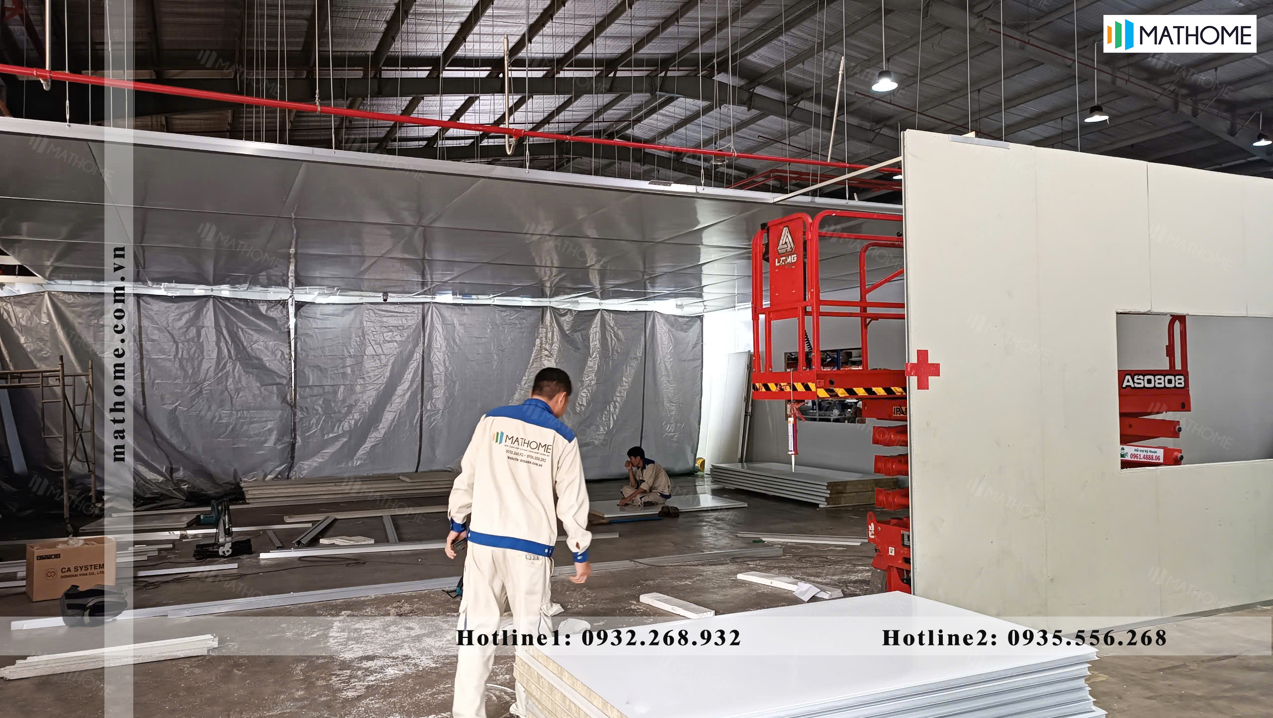- Hạng mục thi công: Lắp đặt vách, trần, cửa cho phòng lắp ráp mới & Tháo dỡ, di dời và lắp đặt lại phòng lắp ráp trước đó.