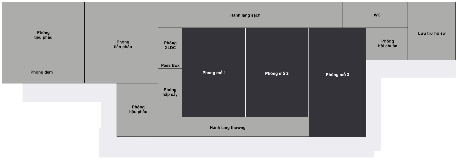 => Các phòng chức năng trên chỉ thực hiện nhiệm vụ chăm sóc, theo dõi sức khỏa người bệnh, xử lý dụng cụ, họp hành, lưu trữ hồ sơ, … không can thiệp trực tiếp vào quá trình phẫu thuật nên không yêu cầu tiêu chuẩn nghiêm ngặt như phòng sạch (cleanroom). Tuy nhiên, vẫn phải đảm bảo vệ sinh, dễ lau chùi và thông khí tốt.