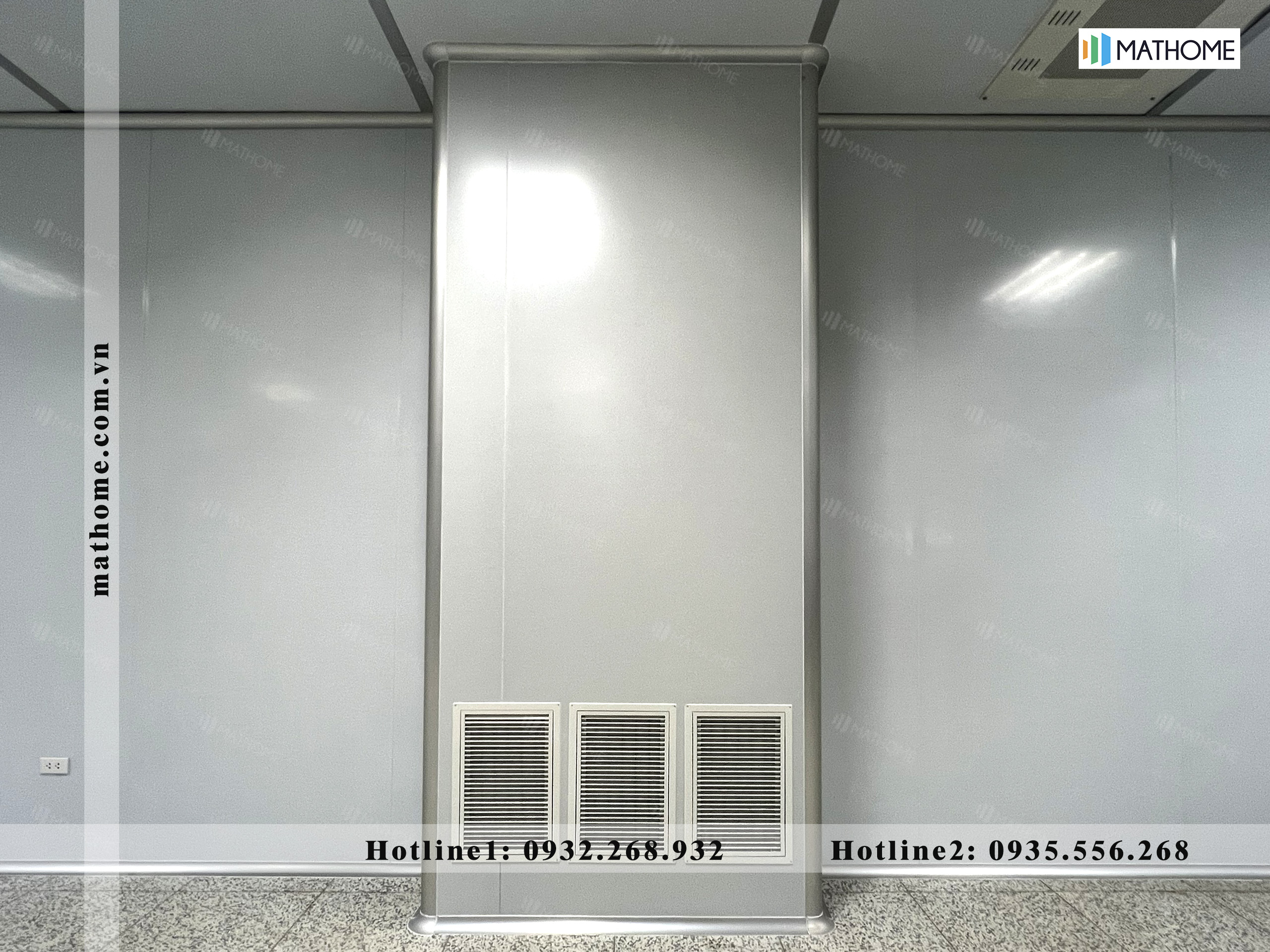 - Vách: Toàn bộ vách bao xung quanh được thi công bằng Panel EPS chống bám bụi, chống thấm nước, chống ẩm mốc, hỗ trợ cách nhiệt và giữ nhiệt, dễ vệ sinh. Đáp ứng được những yêu cầu cơ bản của một phòng sạch.