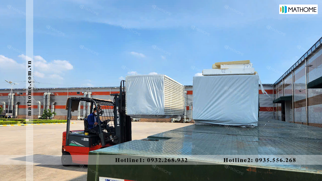 Để hiểu rõ hơn về quá trình thi công trần Panel Inox lõi EPS hai ngàm PU cho Nhà máy chế biến rau củ quả tại Hải Phòng. Quý khách hàng hãy cùng theo dõi những hình ảnh trong quá trình vận chuyển. tập kết vật tư, thi công và hoàn thiện trần Panel dưới đây: