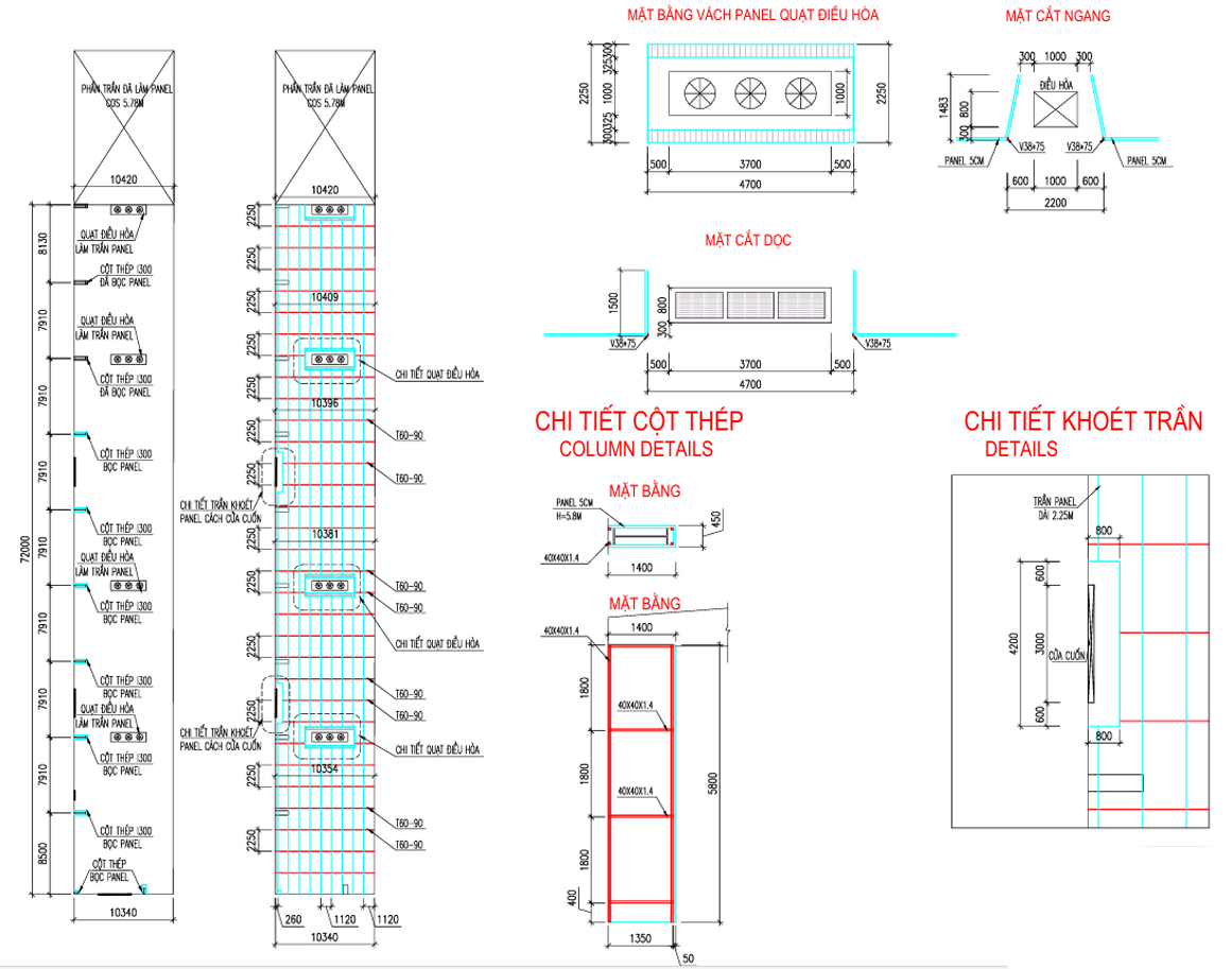 - Bố trí đồng bộ ngay từ khi thiết kế, xác định vị trí đèn, quạt gió, PCCC để khoét lỗ chờ trên Panel.