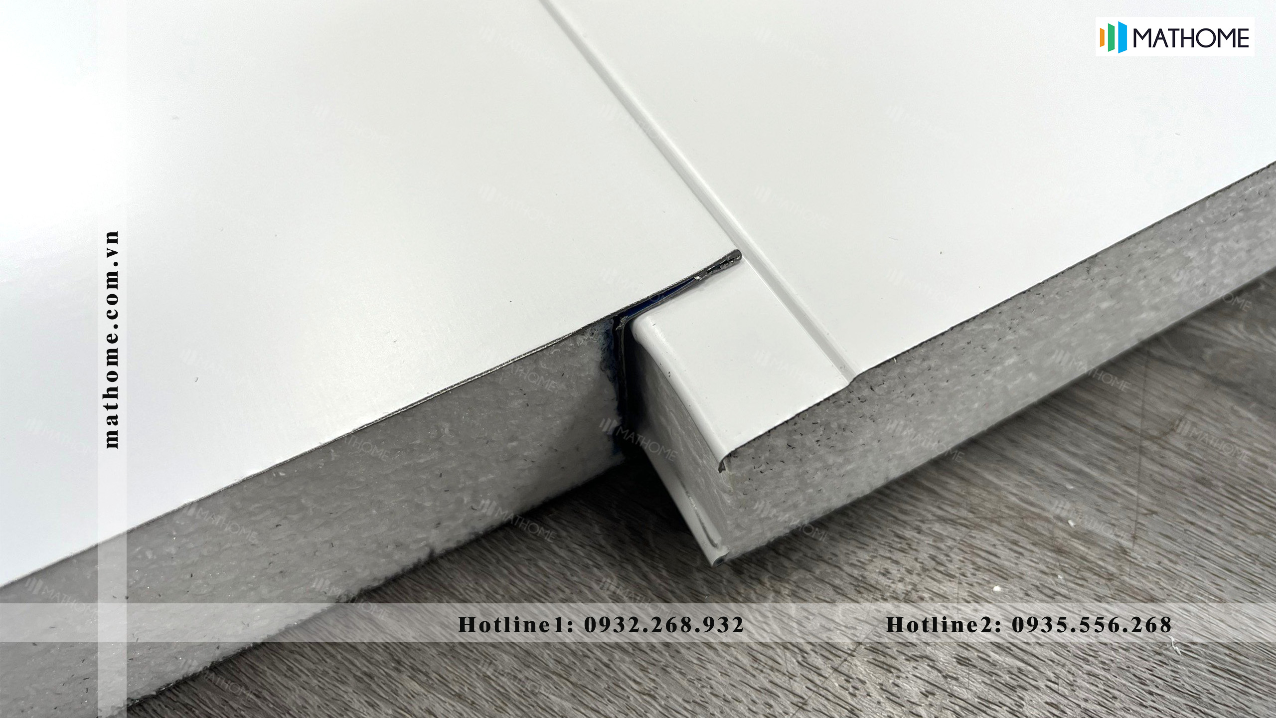 - Tấm màu trắng sữa, hai mặt tôn cán phẳng, mộng âm dương kín khít.