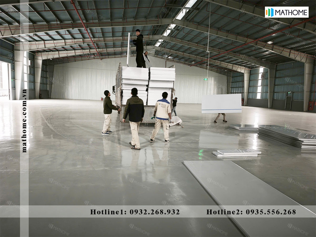 Quá trình lắp đặt Panel EPS gọn gàng, ít bụi và tiếng ồn. Điều này giúp việc thi công diễn ra song song với hoạt động sản xuất mà không gây gián đoạn lớn.