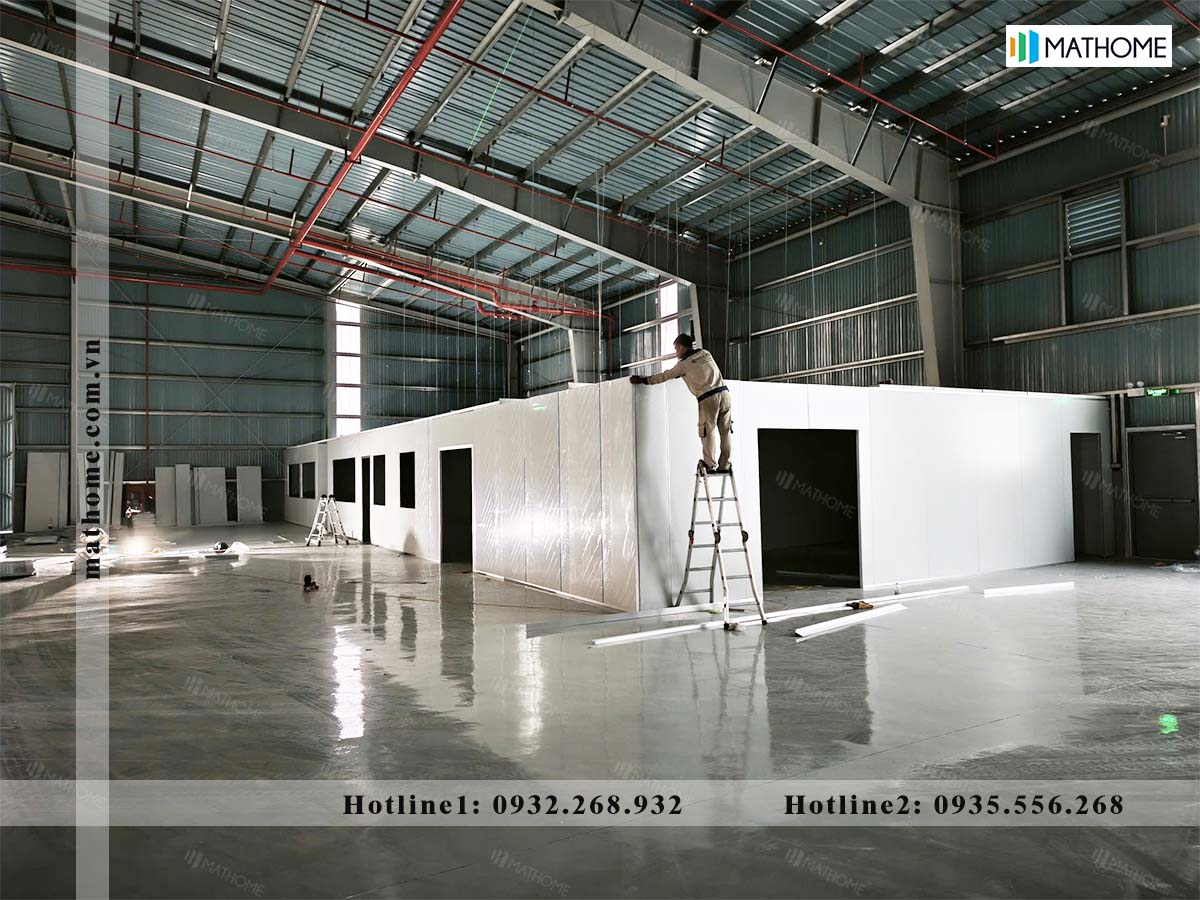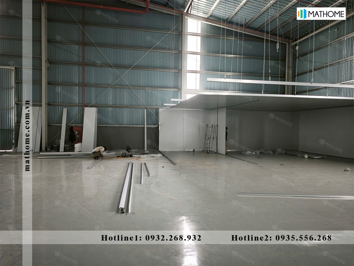 Thi công trực tiếp trong nhà xưởng giúp doanh nghiệp chủ động tổ chức không gian làm việc cho đội ngũ quản lý và nhân sự kỹ thuật. Các bộ phận có thể phối hợp nhanh chóng, giảm thời gian di chuyển và nâng cao hiệu quả giám sát sản xuất. Giải pháp này cũng giúp tận dụng diện tích sẵn có, hạn chế phát sinh hạng mục xây dựng bên ngoài.