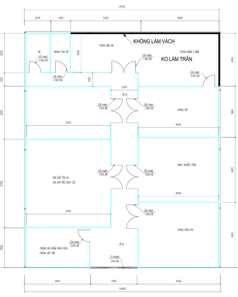 Bản vẽ 2D thiết kế mặt bằng thi công Panel cho nhà xưởng sản xuất yến tại Hưng Yên: